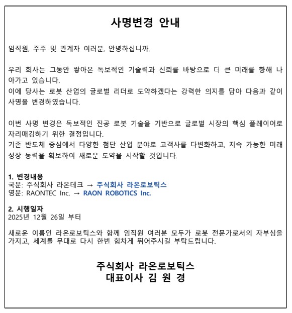 (주)라온테크 임시주주총회 개최를 위한 기준일 공고