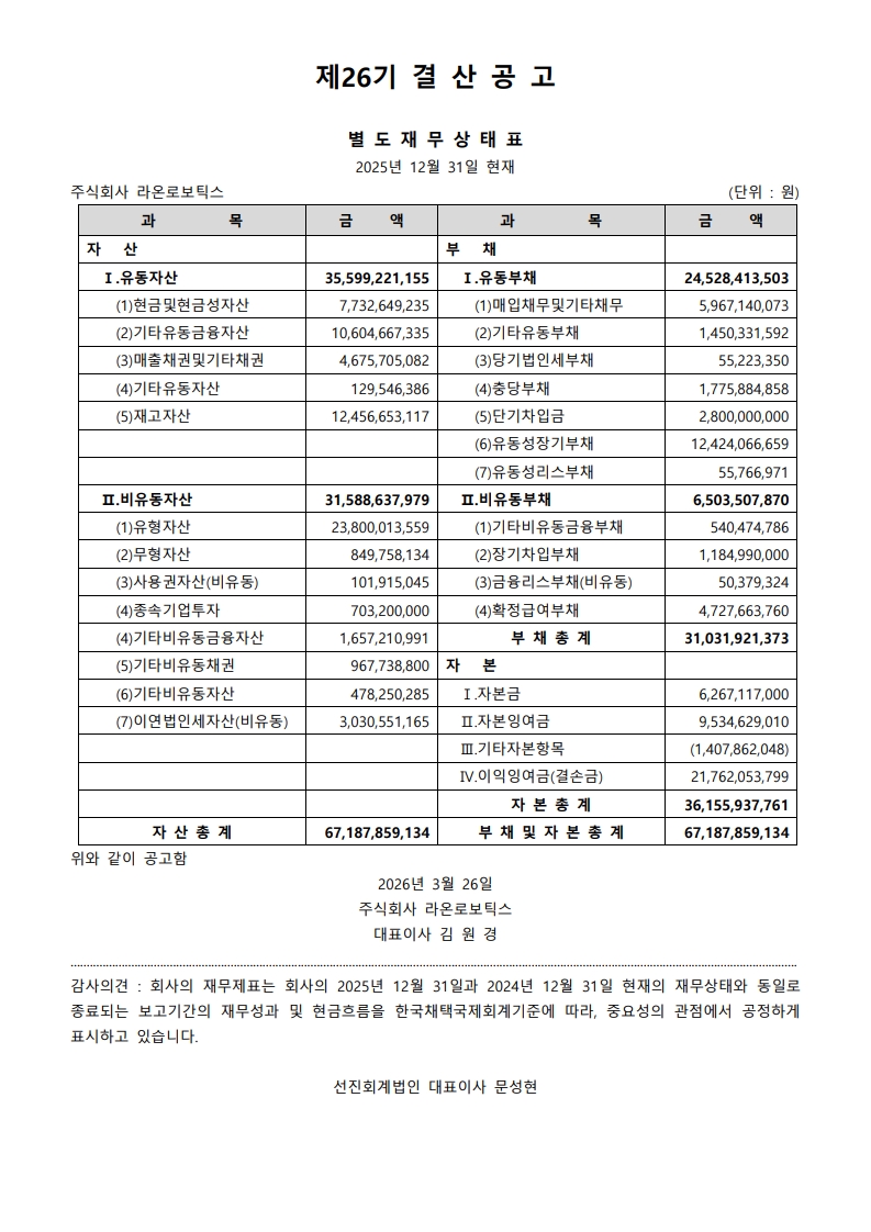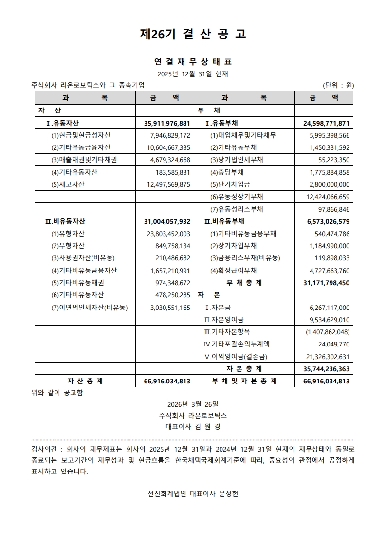 제26기 결산공고